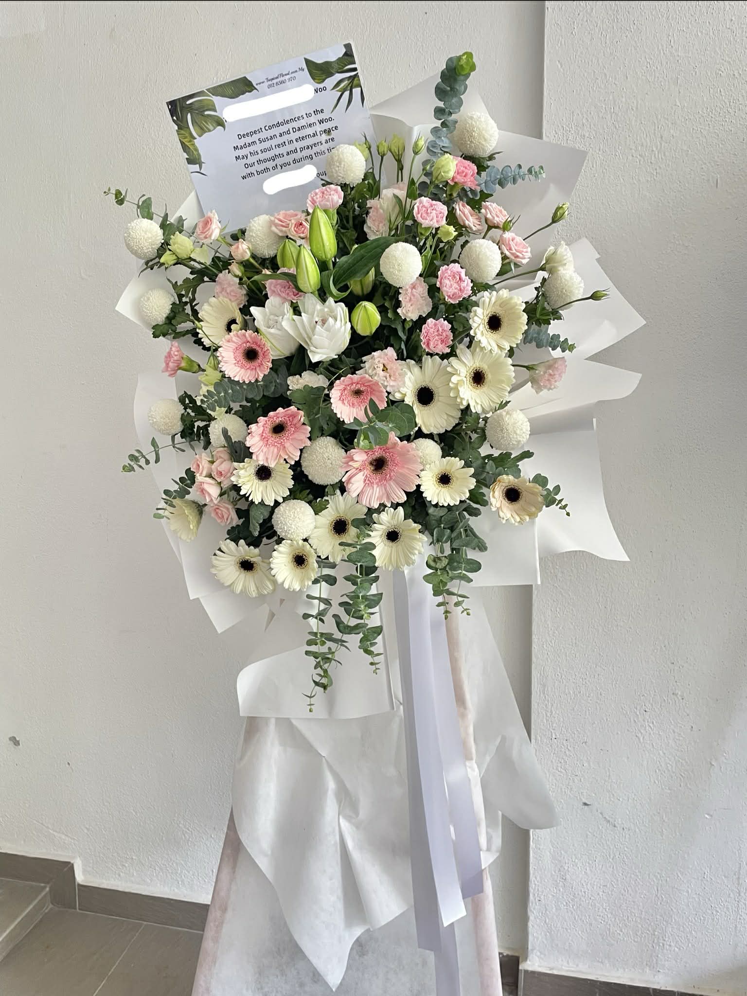 Lilies, Gerberas, Pingpom flower,Linght Pink Carnation ans some Leaves.