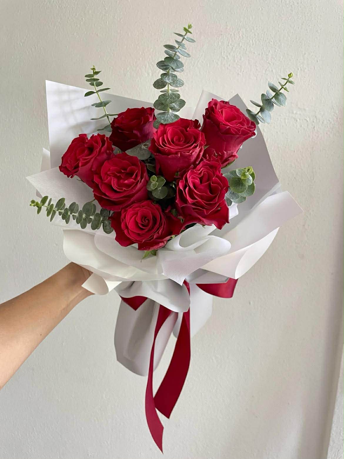7朵红色玫瑰, 搭配尤加利叶与简单的包装
