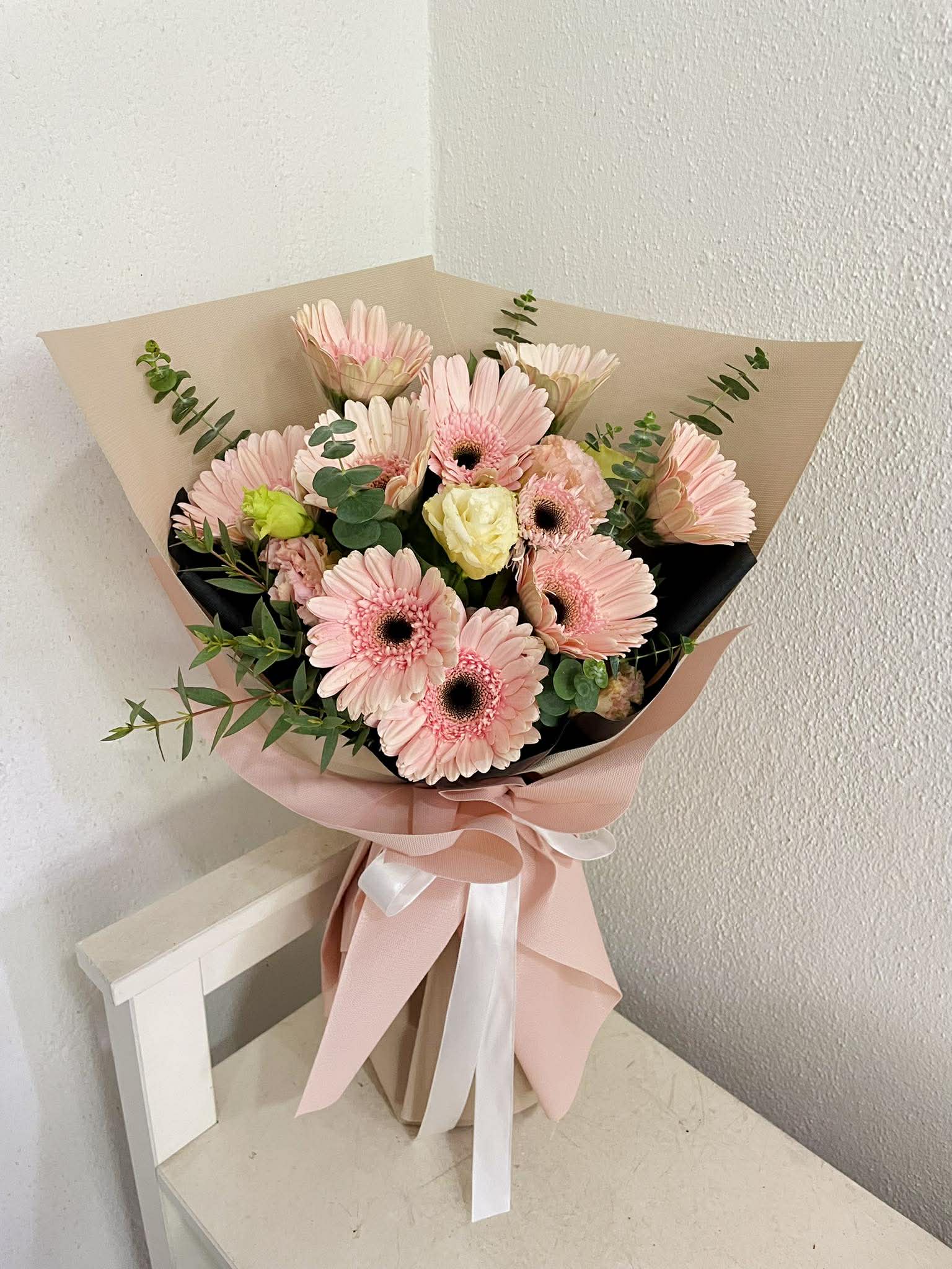Beautiful Sweet Pink Gerberas with some Eustoma flower.